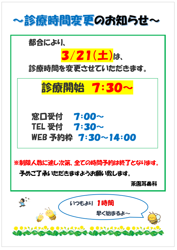 茶園耳鼻科から重要なお知らせ